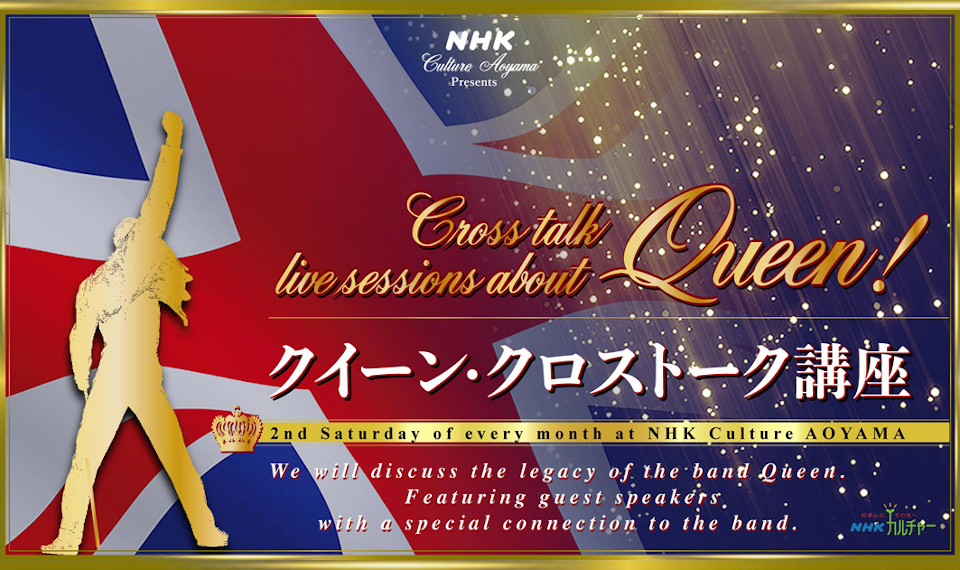 NHK文化センター青山教室でのクイーン講座はこれまで東郷かおる子さんによるものが好評でしたが、今回は石角隆行氏が司会を務め、豪華ゲストを迎えて新たなテーマでの講座が開かれます。