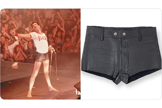 クイーンのフレディ・マーキュリーが、1980年12月6日のバーミンガム公演のアンコールで着用した大胆な黒のレザー・ショートパンツが、4月25日に開催されるオメガ・オークションに出品されることになりました。