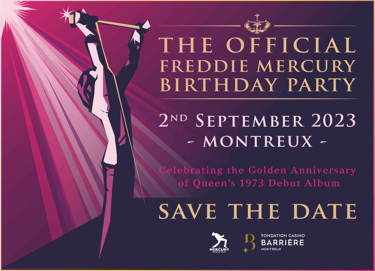 フレディ・マーキュリーの生誕77周年を記念する公式バースデー・パーティー「Save The Date」が、2023年9月2日にスイス・モントルーの「カジノ・バリエール」で開催されることになりました。